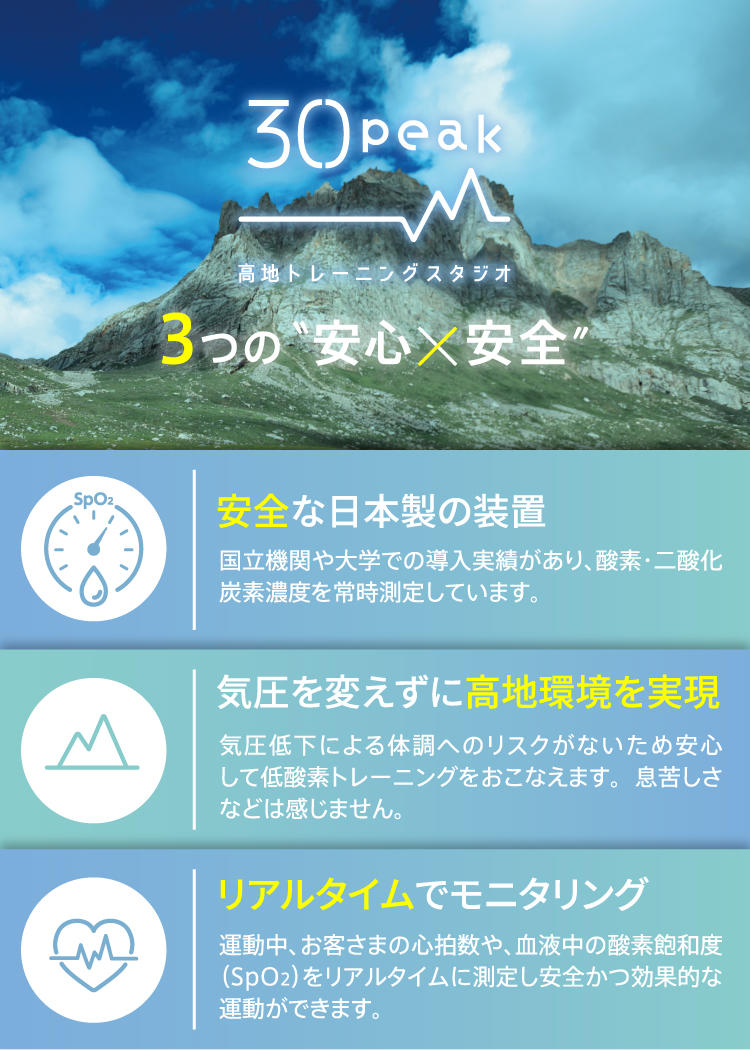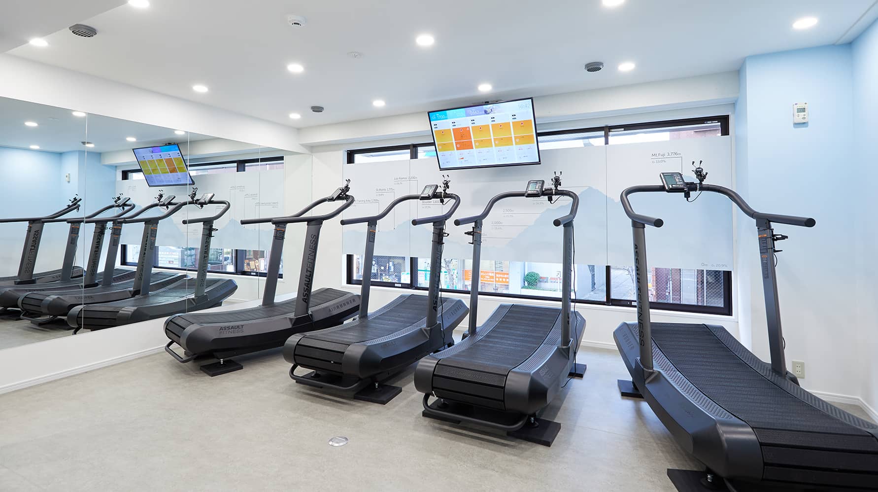 "高地トレーニング"は心肺機能の向上や、筋肥大・筋持久力の向上を促進する可能性も示されており、一般の方はもちろんのことアスリートにもおすすめです。自走式のランニングマシンで、ランニングやウォーキングをおこないます。自走式のランニングマシンは、自らの足の力でベルトを動かすため、下半身の筋力強化やバランス感覚を養いながら、運動することができます。