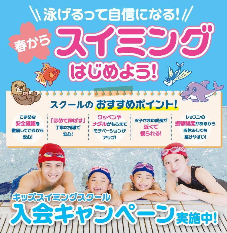 キッズスイミングも実施しており、ベビーから大人までお楽しみいただけます。