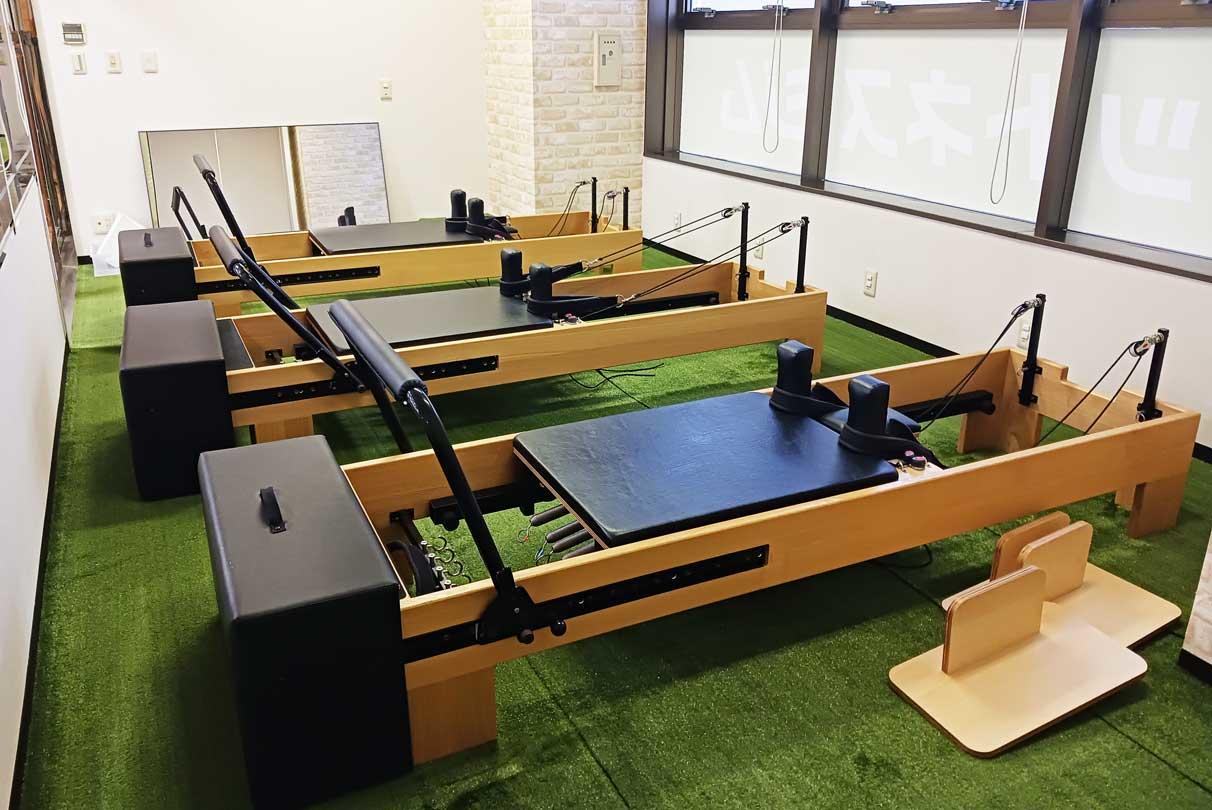 ピラティス専用マシン「リフォーマー」を使用してパーソナルレッスンや