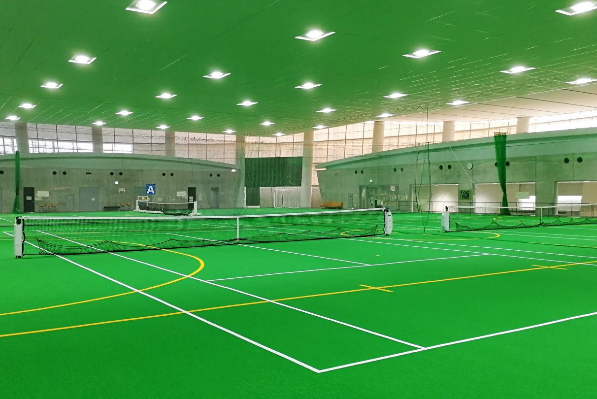 冷暖房設備を備えた室内カーペットコートとなっております。天気や気温を気にせず、1年を通して快適にプレーをお楽しみいただけます。