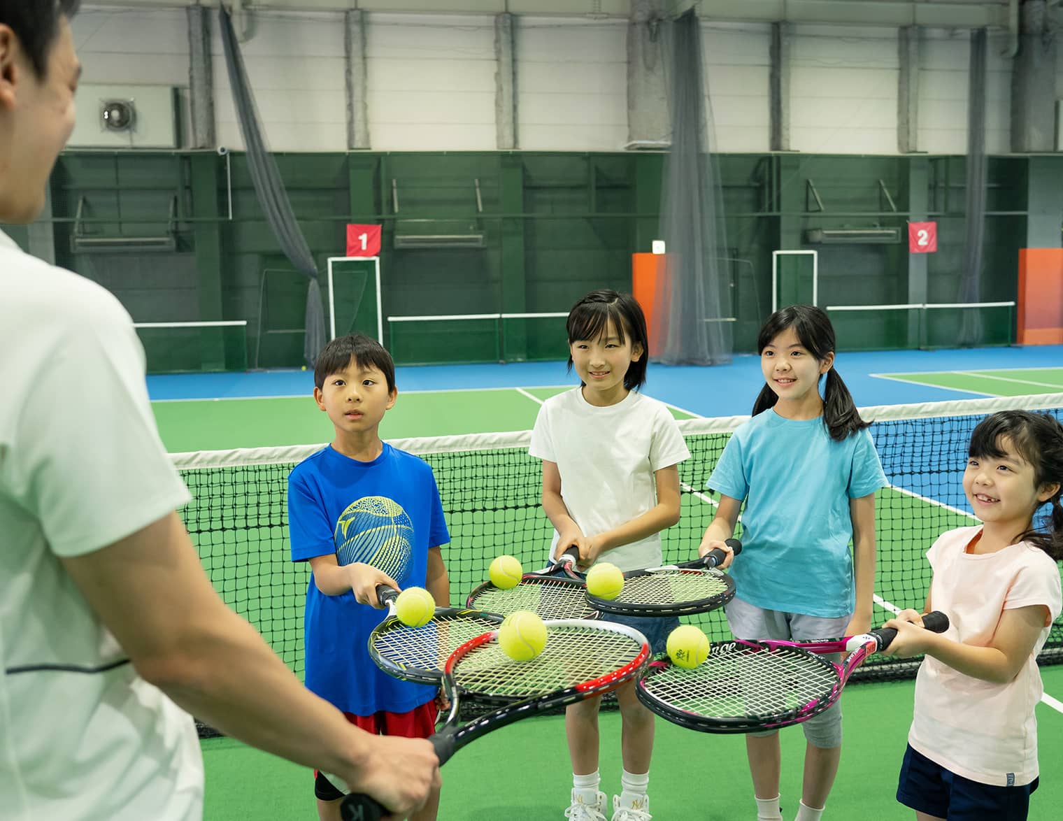 I.T.F(国際テニス連盟)が子供たちの年齢に応じて定めたPLAY+STAYプログラムを採用することで、すぐにゲームを楽しめて、よりスムーズにレベルアップしていただけます。