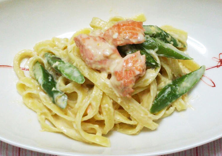 レース当日の食事「アスパラと鮭のさっぱりクリームパスタ」