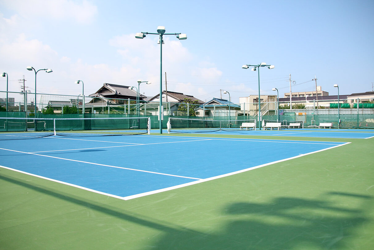 砂入り人工芝コート3面です。スポットクーラーもあり、夏は涼しくプレーできます。