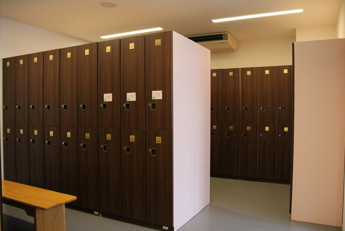 大きなロッカーを用意しております。広くて清潔な更衣室です。