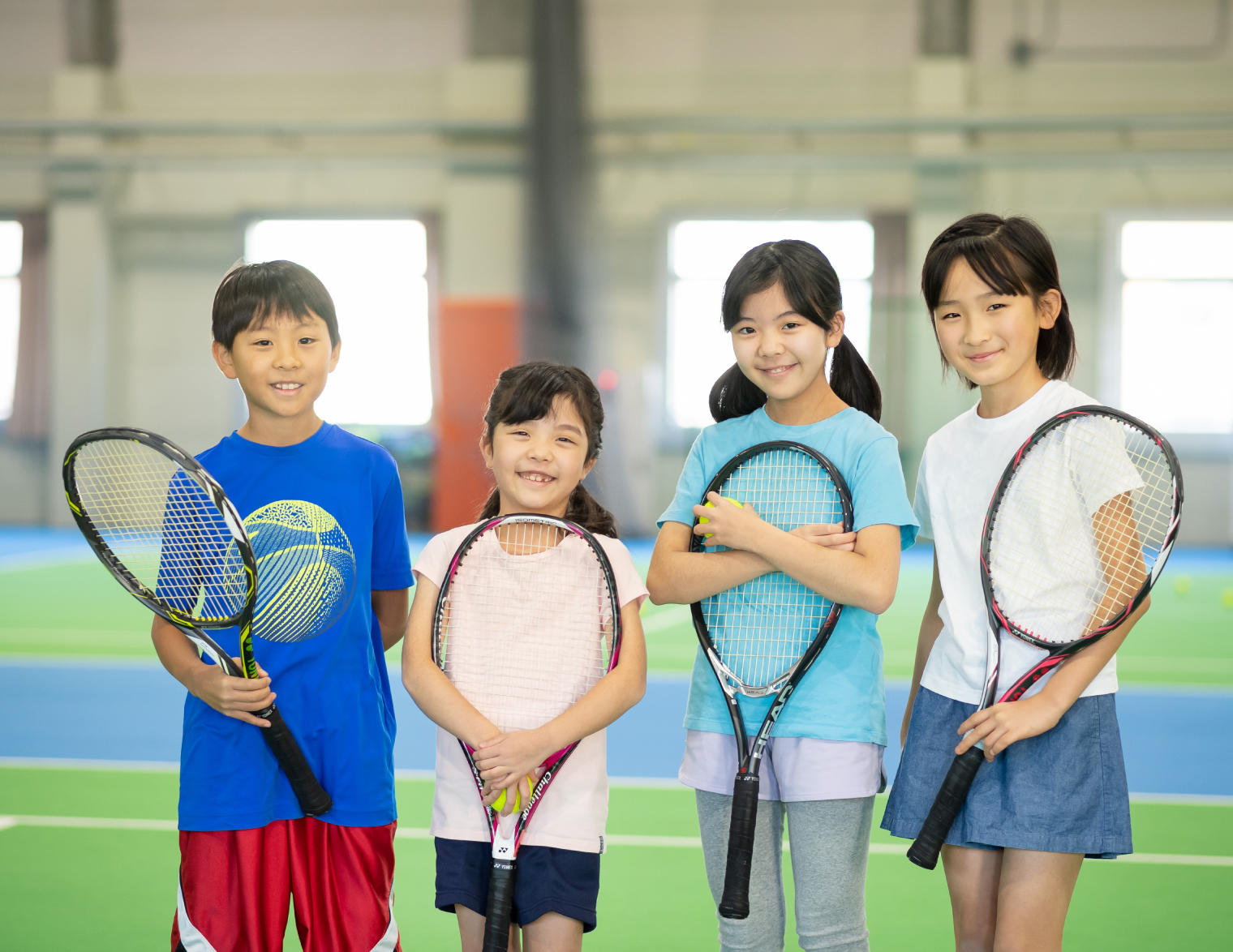 I.T.F(国際テニス連盟)が子供たちの年齢に応じて定めたPLAY+STAYプログラムを採用することで、すぐにゲームを楽しめて、よりスムーズにレベルアップしていただけます。