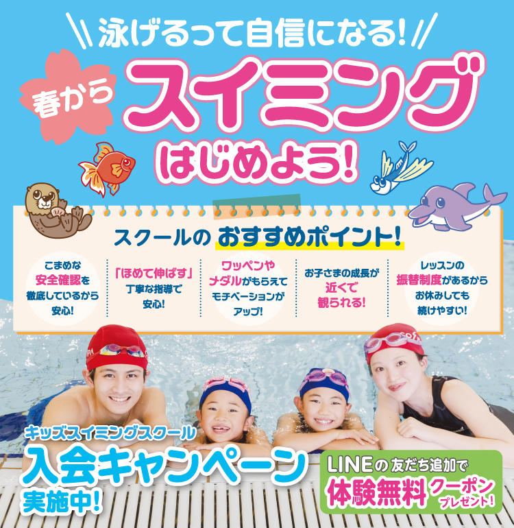 【LINE友だち限定クーポン】キッズスイミング1日体験料0円!