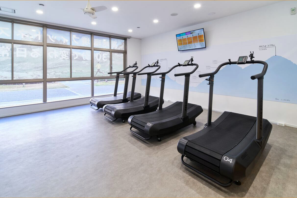 標高2,500mの高地の相対する酸素濃度空間を実現しました。この空間でウォーキングやランニングなどのトレーニングがおこなえます。