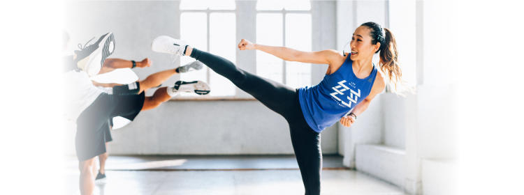 音楽に合わせて行う格闘技の動作で、全身を鍛え、引き締まったカラダとキレのある動きを目指します。ストレスを発散して最高の時間をお楽しみください。