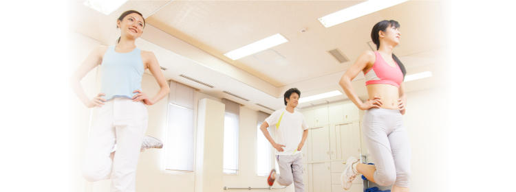 ステップ台を利用した昇降運動で、基本動作を中心に膝に無理なく脂肪燃焼をねらいます。