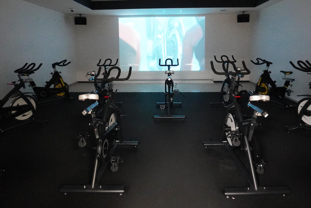 大きなスクリーンに映し出されるデジタル映像に合わせて、楽しみながらバイクを漕ぐ、革新的なサイクルワークアウトが楽しめます。