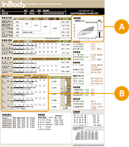腹部にどの程度脂肪がついているかを内蔵脂肪レベルで確認できるので、見た目だけではわからない「隠れ肥満」も見つけることができます。