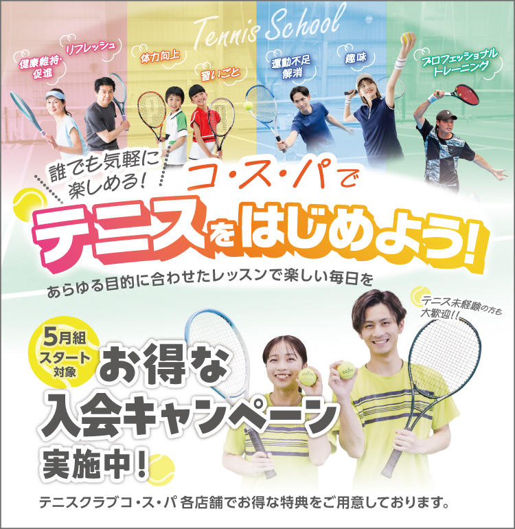 テニススクール5月組 お得な入会キャンペーン実施中!