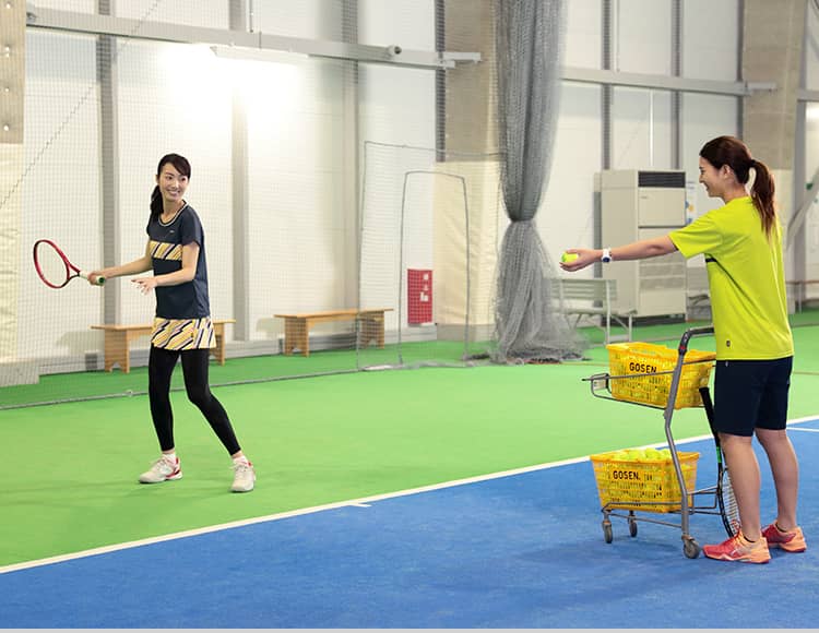 レンタルコートも受付中!冷暖房完備のインドアテニスコートなので、日焼け、暑さ、寒さ、雨も気にせずテニスを楽しめます。レッスンでかいた汗も、シャワールームやドライヤーを完備したパウダールームですっきり流して帰れます。