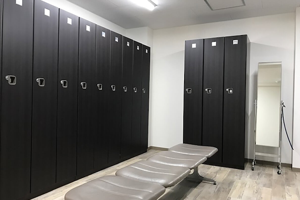 大きなロッカーを用意しております。広くて清潔な更衣室です。