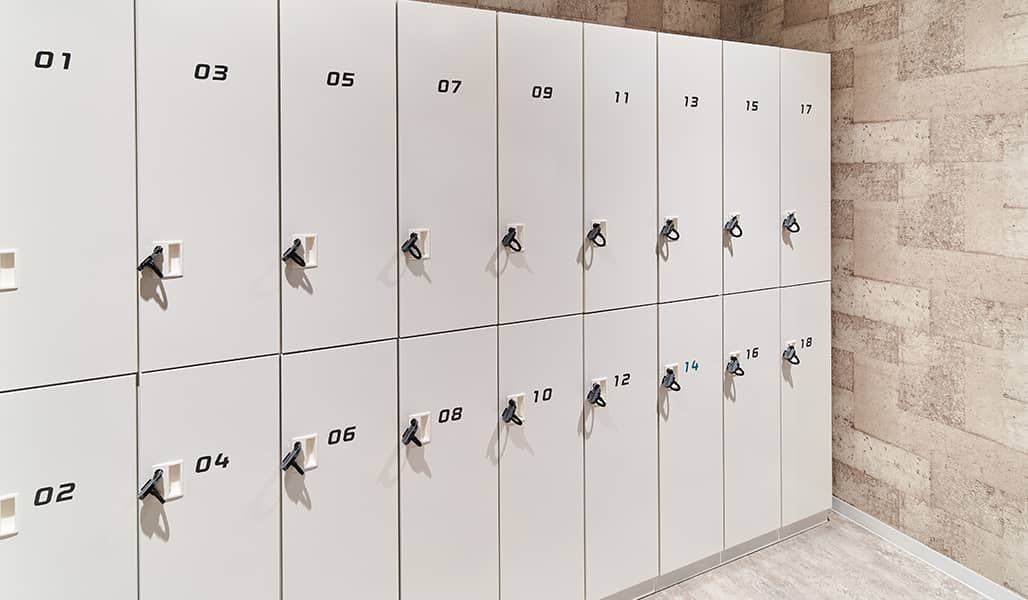 扉に鍵のついているお好きなロッカーをお選びいただき、ウェアに着替えます。荷物は必ずロッカーの中に入れてください。