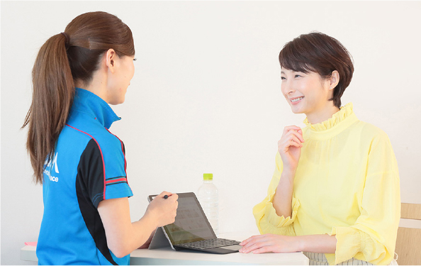 お客さまの運動状況や、日頃のお悩みについて、約30分カウンセリング。個別の課題に応じて、運動を続けるための最適なプランをご提案します。