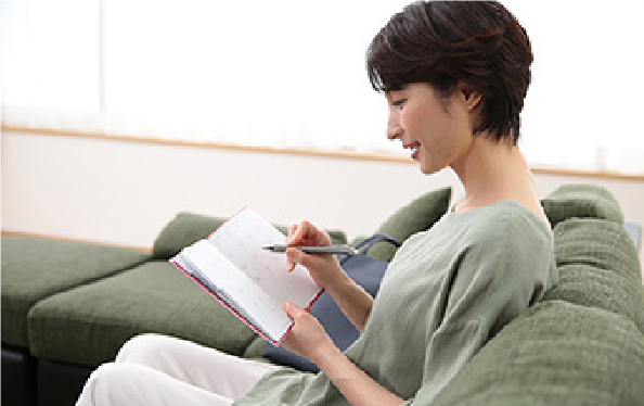 1ヶ月に1度、身体の変化と運動効果をチェック。トレーニングを終えての感想や運動効果の実感などについて、担当のスタッフと話をしながら次の目標を再設定します。