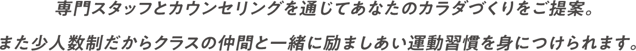 少人数制のため、担当のスタッフと気軽にコミュニケーションをとりながら、効果的な運動を行うことができます。